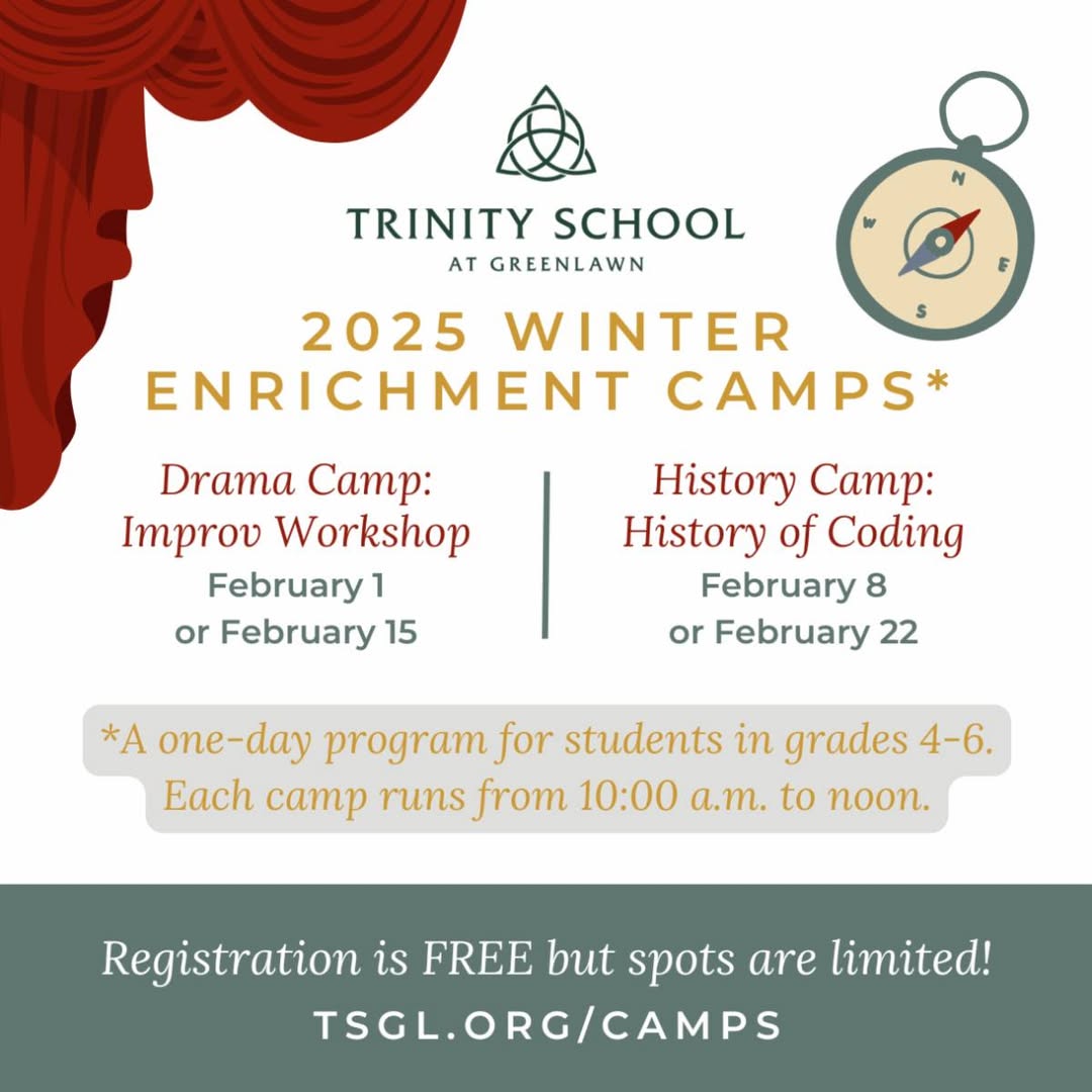 Registration is now open for Trinity's Winter Enrichment Camps! Camp sessions are open to all children in grades 4-6. There is no fee to attend, but spots are limited, and will be filled on a first …