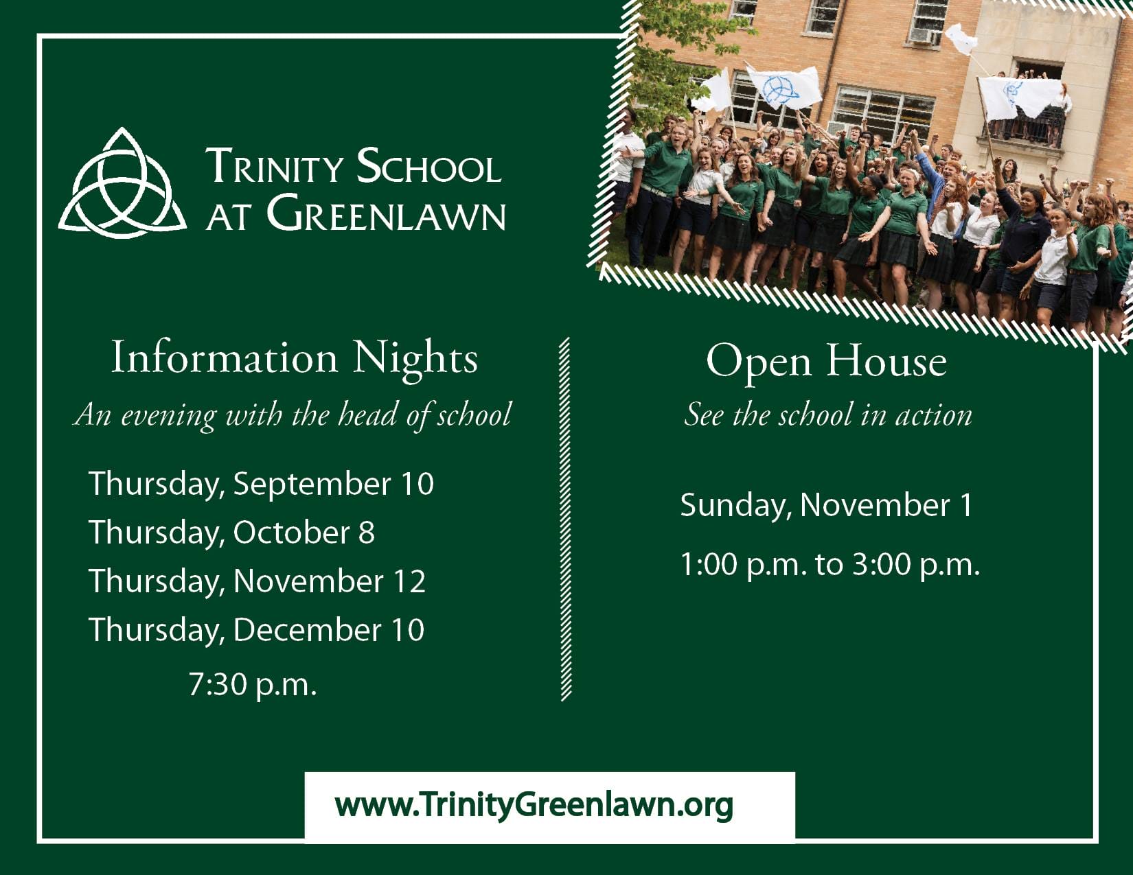 We have an information night on Thursday, September 10 at 7:30. Let your friends know by sharing the
