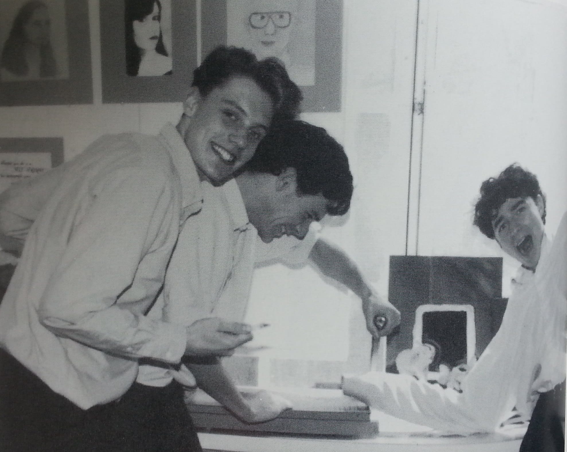 #tbt to that time when Pat Kottkamp pretended to cut off his hand in art class while our current dean of boys, Matt Bartek, looked on. …
